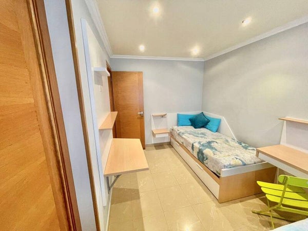 Apartamento en planta baja. con dos habitaciones, una de matrimonio con baño en suit y vestidor y otra con dos camas nido y dos escritorios.